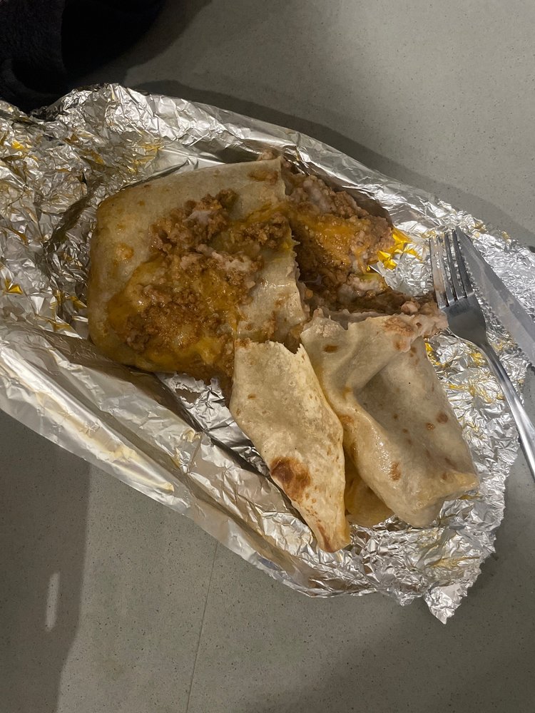 Burrito with Eggs, Potatoes, Chili, and Cheese