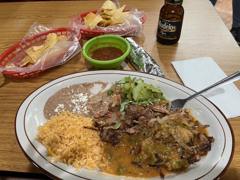 Sliced chicken breast cooked in a tomatillo salsa with sliced nopales and topped with queso fresco.Served with rice & beans