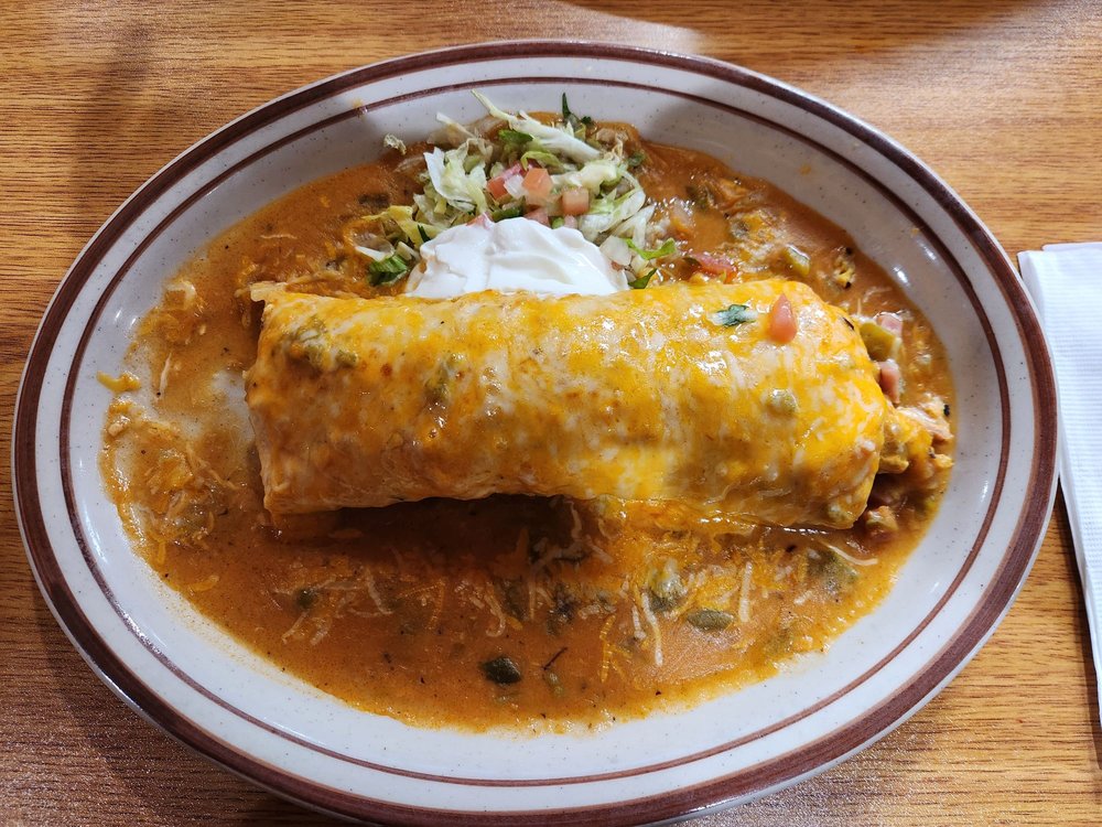 Filled with diced shrimp cooked with pico de gallo, topped with avocado slices and cheese. With Green Chile.