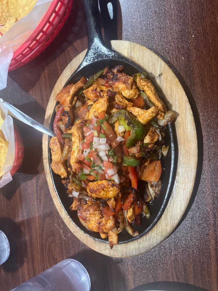 Choose (2) of the following meats: Grilled Chicken, Grilled Steak, or CarnitasCooked with Bell Pepper, Onions, polish sausage, and chorizotopped with radishes, cheese, and a salsa picanteincludes tail plate with rice and beans